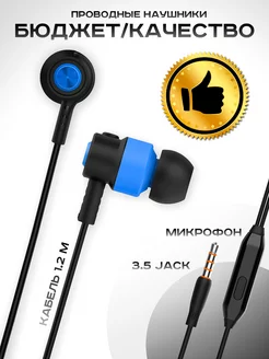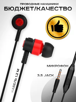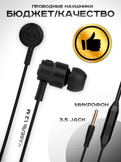 Вакуумные проводные наушники с микрофоном для телефона и ПК