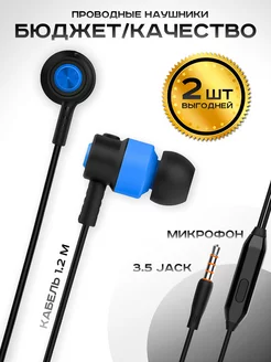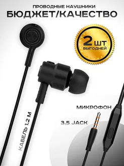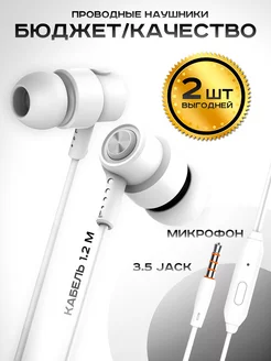 Вакуумные проводные наушники с микрофоном для телефона 2пары