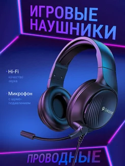Игровые наушники проводные большие с микрофоном и подсветкой