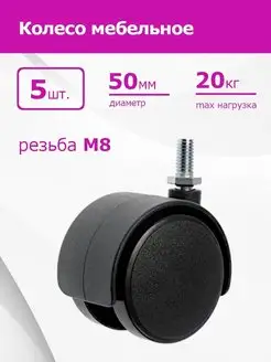Колесо мебельное диаметр 50мм, на резьбе М8, 5 шт
