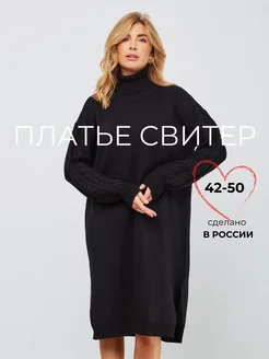 Платье свитер вязаное с горлом оверсайз с длинным рукавом