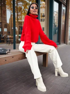 Свитер теплый оверсайз вязаный с горлом зимний Pinterest