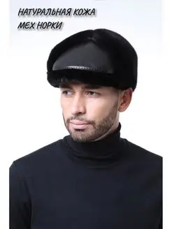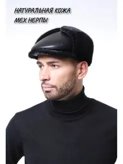 шапка-ушанка зимняя кожаная с мехом нерпы