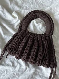 Сумка женская вязаная с бахромой ручная работа коричневая
