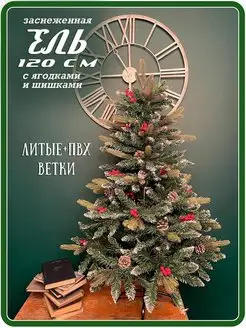 Елка искусственная Литая с ПВХ 180 см с ягодами и шишками