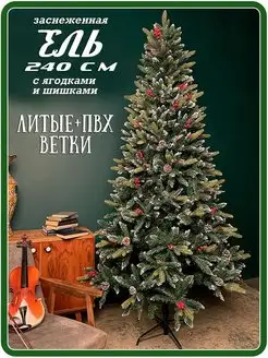 Елка искусственная Литая с ПВХ 240 см с ягодами и шишками