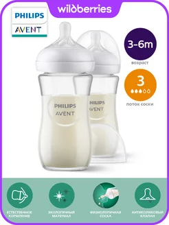 Бутылочка стекло Natural Response SCY933 02, 240мл, 2 шт