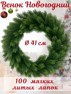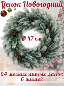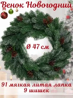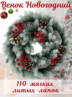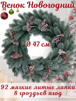 Новогодний венок с еловыми веточками, ягодами и шишками