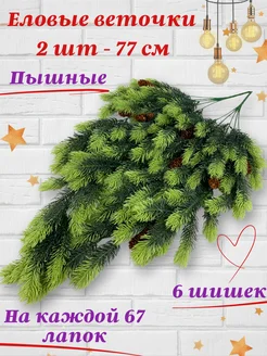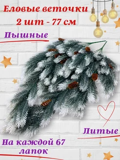 Ветка ели ампельная в снегу с шишками - 2 шт