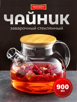 Стеклянный чайник заварочный с ситечком, 900 мл