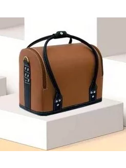 Бьюти-кейс коричневый с черными ручками (матовый)