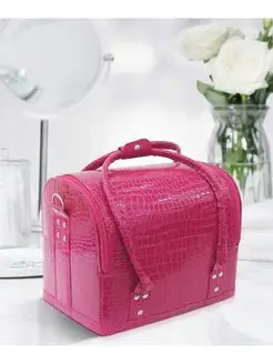 Бьюти-кейс розовый крокодил для визажиста косметолога