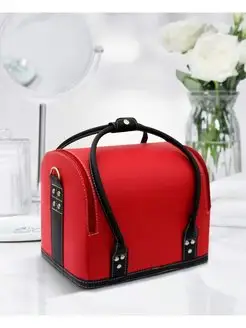 Бьюти-кейс красный с черными ручками (матовый) для визажиста