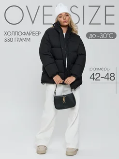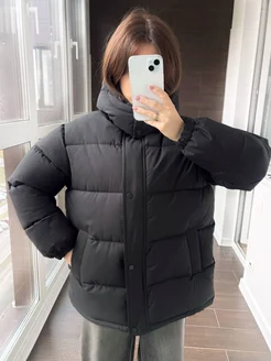 Куртка зимняя оверсайз короткая с капюшоном