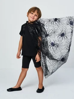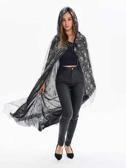Плащ накидка с капюшоном на хэллоуин черный 90 см