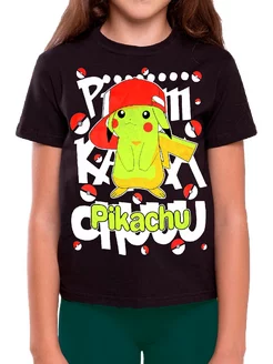Черная Футболка Пикачу Pikachu с принтом светящаяся GP