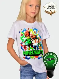 Белая футболка minecraft с принтом майнкрафт Новогодняя