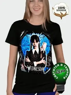 Футболка черная с принтом Уэнсдей Wednesday новогодняя