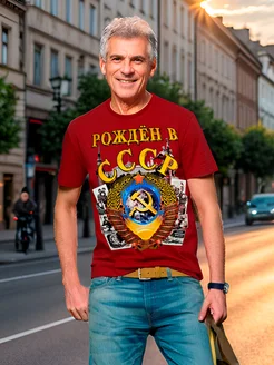 Красная Футболка с надписью Рожденный в СССР светящаяся GP