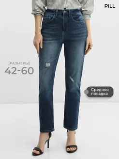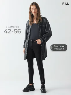 Черные джинсы-слим с потертостью со стразами большие размеры
