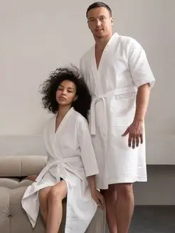 Халат банный вафельный смесовый "Кимоно", белый, 141913