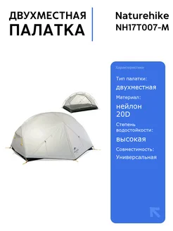 Палатка Mongar NH17T007-M 20D двухместная серая