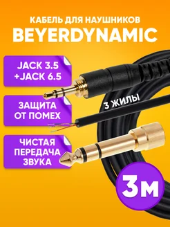 Прямой кабель для наушников 3 м, Jack 3.5 + Jack 6.5