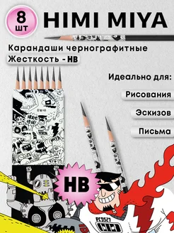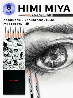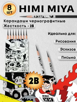 Карандаши простые чернографитные 2В, мягкие, набор 8 штук