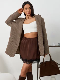 Юбка мини атласная с кружевом бельевая