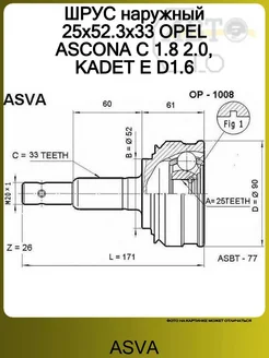 ШРУС наружный 25x52.3x33 OPEL ASCONA C 1.8 2.0, KADET E D1.6