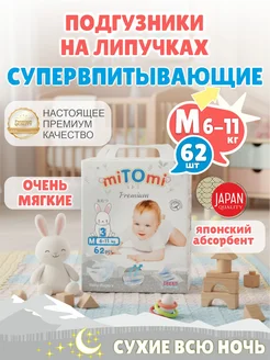 Подгузники на липучках Premium 3 М 6-10 кг 62 шт