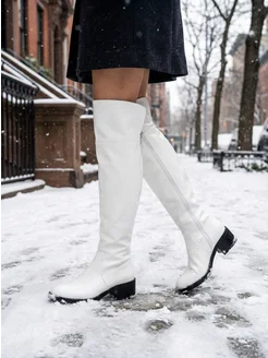 Зимние белые полусапожки гармошка из натуральной кожи