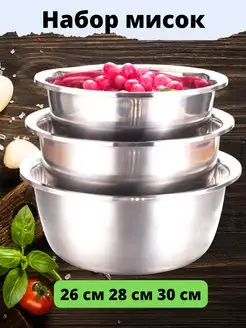 Миски 26, 28, 30 см из нержавеющей стали для кухни 3 шт