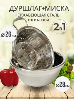 Набор дуршлаг 26 см и миска из нержавеющей стали