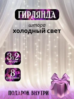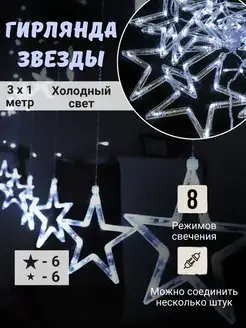 Гирлянда штора звезды на окно занавес новогодняя на елку