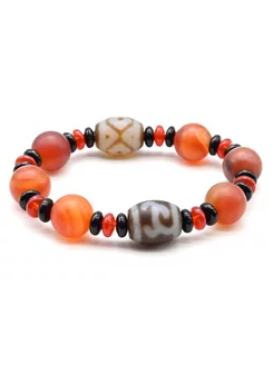 Браслет с бусинами "Дзи" из агата и матовым сердоликом