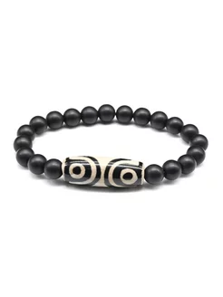 Мужской браслет из шунгита с бусиной агата Дзи Четыре глаза