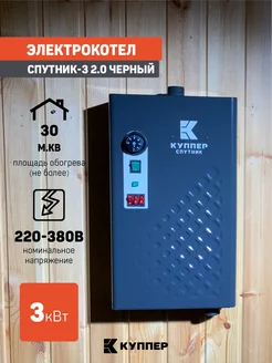 Электрокотел СПУТНИК-3 2.0, 3кВт, 30 м2, черный