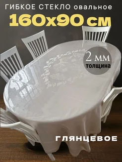 Гибкое стекло на стол прозрачное 2 мм овал 90x160 см