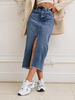 Юбка джинсовая миди с разрезом спереди y2k
