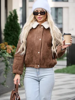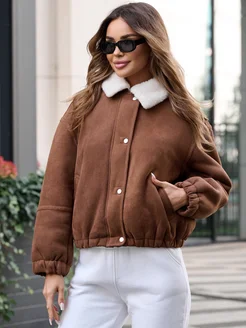 Бомбер утепленный осенний демисезонный дубленка оверсайз