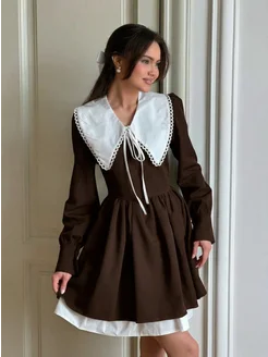 Черное платье лапша на завязках короткое осеннее-зимнее