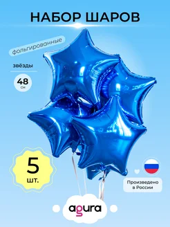 Шары воздушные Фольгированные. Набор 5 шт. Звёзды Синий