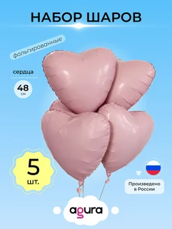 Воздушный шар фольгированный Набор Сердец Пыльная роза 5 шт