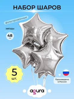 Воздушный шар фольгированный Набор Звёзды Серебро 5 шт