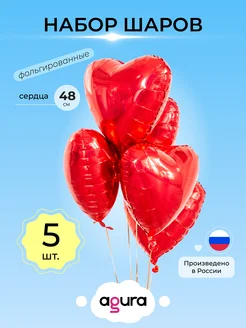 Воздушный шар фольгированный Набор Сердец Красный 5 шт