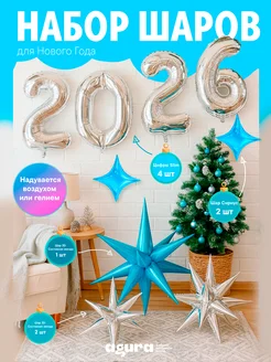 Шары воздушные Фольгированные. Сет 9 шт Новогодний серебро
