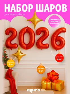 Шары воздушные Фольгированные. Сет 9 шт Новогодний красный