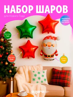 Шары воздушные Фольгированные Сет 4 шт Новогодний Дед Мороз