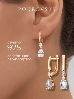 Серьги гвоздики серебро 925 позолоченные муассанит